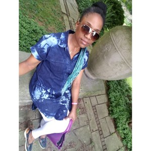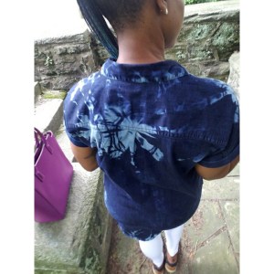 I acquired this upcycled Bleach Tie-dye Gap Dark Wash Platform Shirt Dress from the 2nd Street Festival in NoLibs (Northern Liberty). The vendor was two young ladies that worked at a last destination thrift store. They find pieces they loved and upcycled them with a new patterns and/or reconstructed them. I regret that at the time they didn’t have a business cards. Yet if they see this post, hopefully, they’ll contact me so I can add a link to their business.