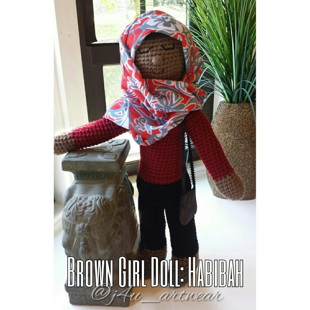 Habibah has a Café Latte Complexion, wearing a Red, White, & Silver Hijab, Scarlet Top, Black Bottom, & Shimmery Silver Mary Janes. Her and Hababah are inseparable. Their love for one another shines through as they enjoy each others company and travel the world.